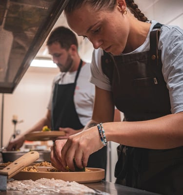 Une jeune cheffe d'Annecy, aux manettes de la cuisine d'un restaurant local la journée et fondatrice de la table vagabonde.